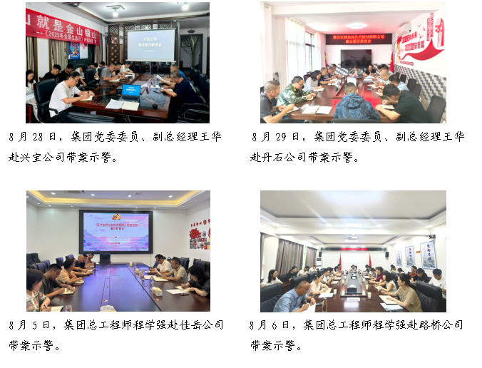 近期,雅安交建集團(tuán)組織開展警示教育活動(dòng),集團(tuán)領(lǐng)導(dǎo)班子成員深入分管聯(lián)系的子公司“帶案示警”,通過專題學(xué)習(xí)今年駐市交建集團(tuán)紀(jì)檢監(jiān)察組查處的六起典型案例通報(bào)、剖析違紀(jì)違法案例等形式,推動(dòng)紀(jì)法教育、廉潔從業(yè)走深走實(shí),引導(dǎo)黨員干部職工養(yǎng)成在受監(jiān)督和約束的環(huán)境中工作生活的習(xí)慣,做到既勤又廉、遵規(guī)守紀(jì)依法,讓“心有所畏、行有所止”成為日常自覺。