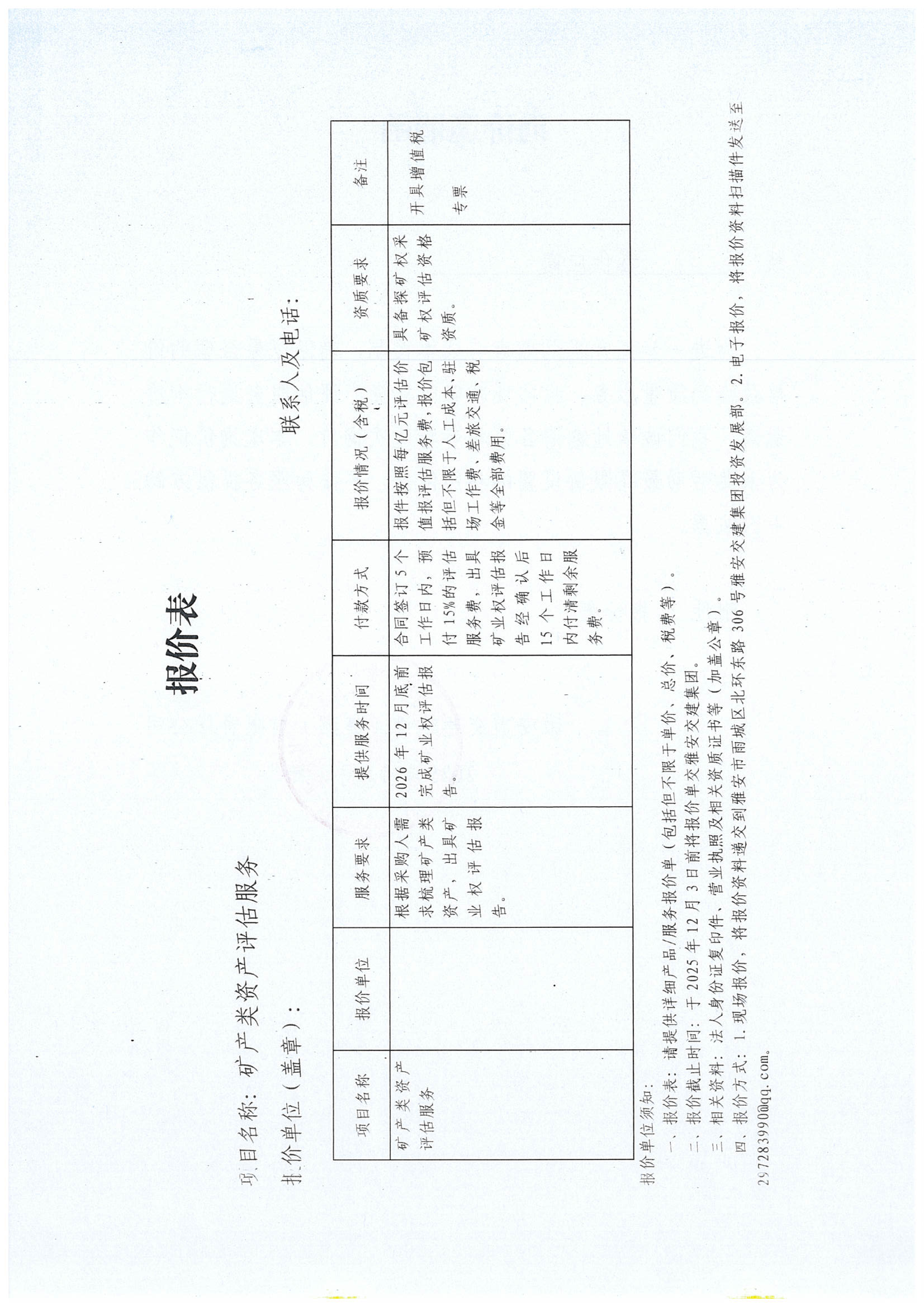 關(guān)于雅安市交通建設(shè)(集團(tuán))有限責(zé)任公司礦產(chǎn)類資產(chǎn)評估服務(wù)采購限價的詢價函