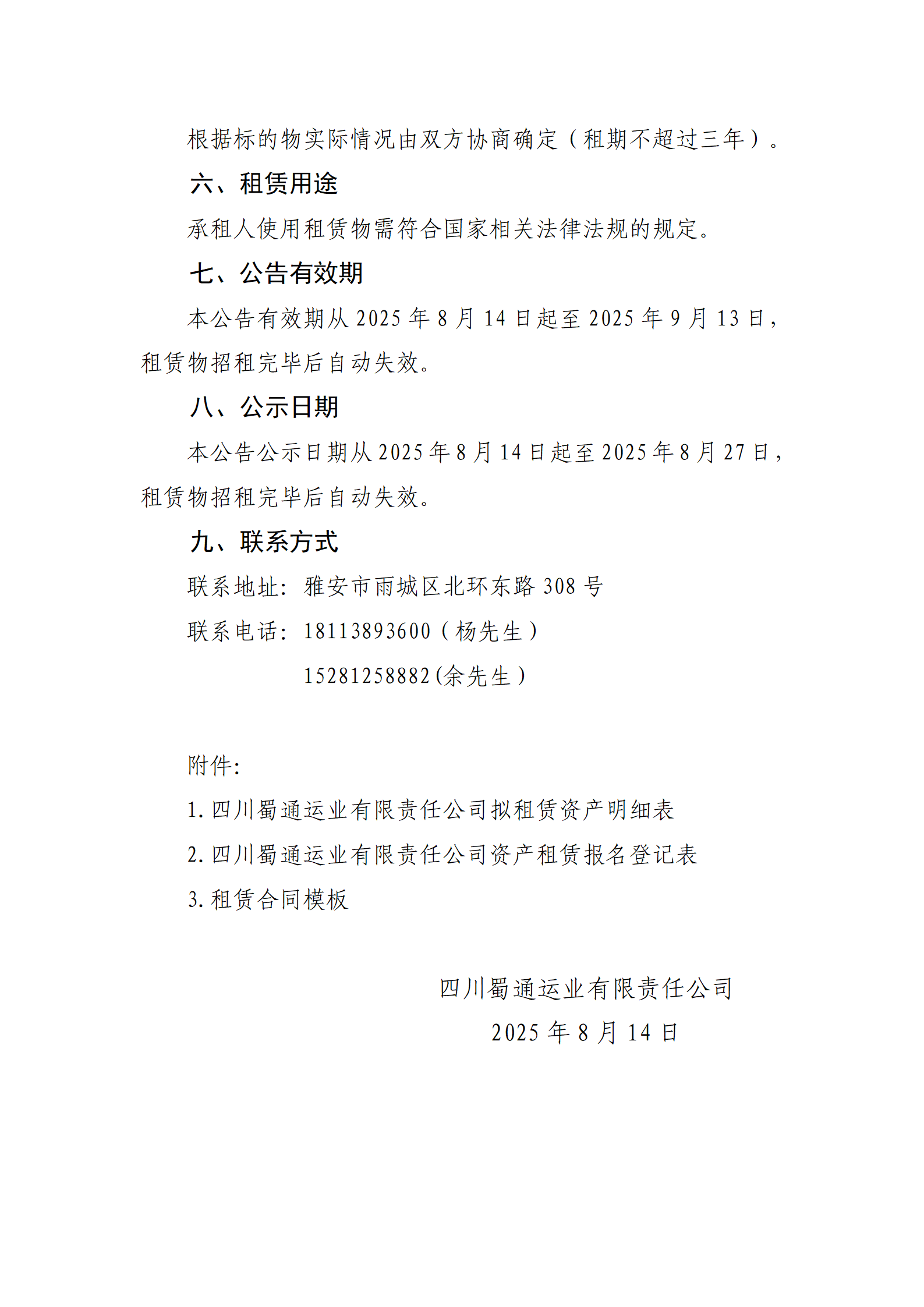 四川蜀通運(yùn)業(yè)有限責(zé)任公司 關(guān)于九襄汽車(chē)站出口右側(cè)維修車(chē)間旁邊閑置場(chǎng)地進(jìn)行掛網(wǎng)招租的公告